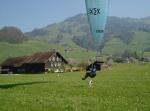 | [eaglu] | | Landung am Landeplatz Kiener / Seewen. Im Hintergrund (neben Eintrittskante) ist der Startplatz am Engelstock zu erkennen. |