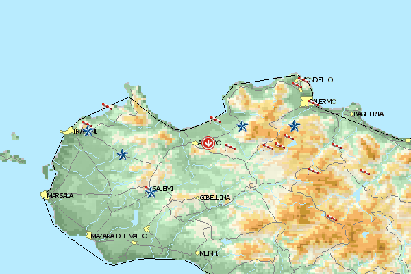 Die beiden Startplätze Bolognetta Antenne/Casachella (400/310 m) befinden sich in der Nähe von Palermo, werden trotz der herrlichen Landschaft allerdings nur selten von Paraglidern benützt ....die Gegend ist mit Hochspannungs-Leitungen kreuz&quer zugeballert ....darum !