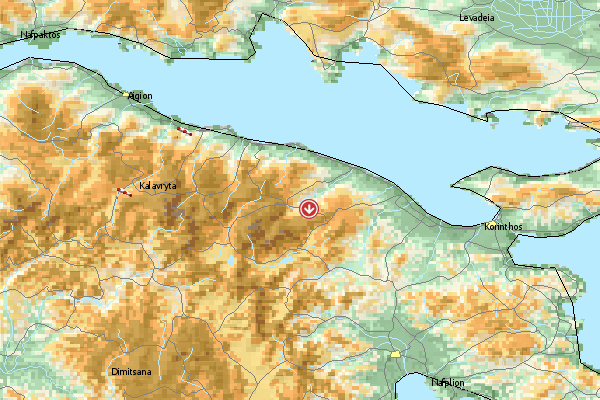 Der Startplatz Velia befindet sich auf 1550m. oberhalb der Stadt Kalavrita.Genau auf dem Gipfel gelegen hat man sowohl die Startmöglichkeit Richtung Kalavrita (Nordwest) als auch in Gegenrichtung (Südost).