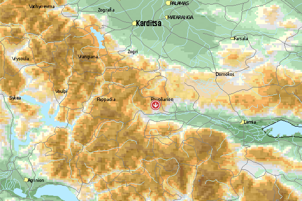Ca. 540m hoher Berg im östlichen Bereich der Ebene von Larissa, Startmöglichkeit nach West, Süd und Ost. Landung auf den Feldern und "Wiesen" westlich von Makrochori