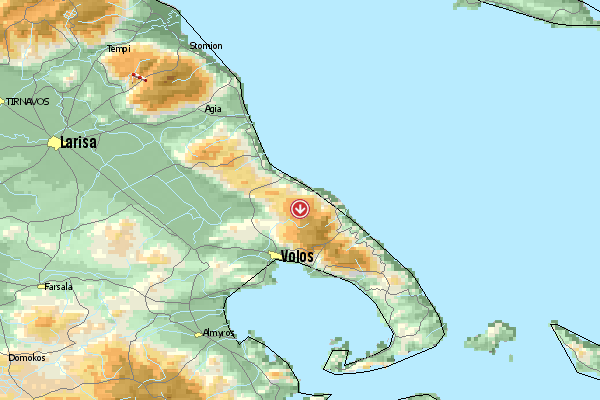 Ca. 540m hoher Berg im östlichen Bereich der Ebene von Larissa, Startmöglichkeit nach West, Süd und Ost. Landung auf den Feldern und "Wiesen" westlich von Makrochori