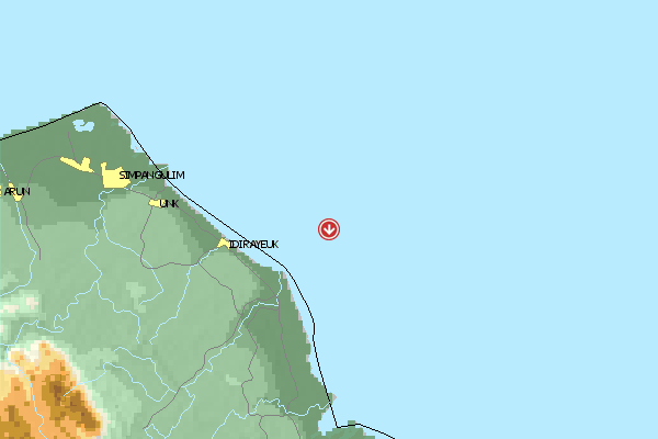 Saison ist hier von Mai bis September. Es geht oben vom Start Bukit Air Manis Richtung W runter zur Landezone Pantai Air Manis.