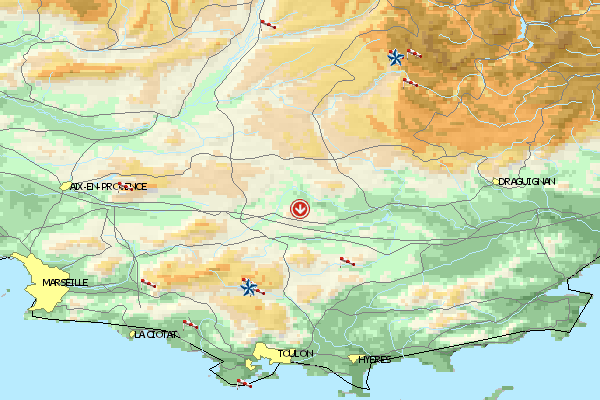 In der Nähe von Marseille der einzige Berg für Gleitschirme und Drachenflieger. Bis zum Landeplatz braucht man allerdings eine Gleitzahl von 5,5. Günstigste Bedingungen ab mittags.