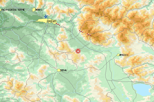 Sommer 2012: Mit dem Auto kann der Punkt 43°42'53.12"N / 11°33'35.25"E gut erreicht werden. Von da ist es zu Fuss ca. 20-30min...