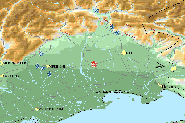| [leto] | | Der Landeplatz in Gemona ist gestrichelt eingezeichnet. Der Fliegertreff ist gelb eingeringelt. |