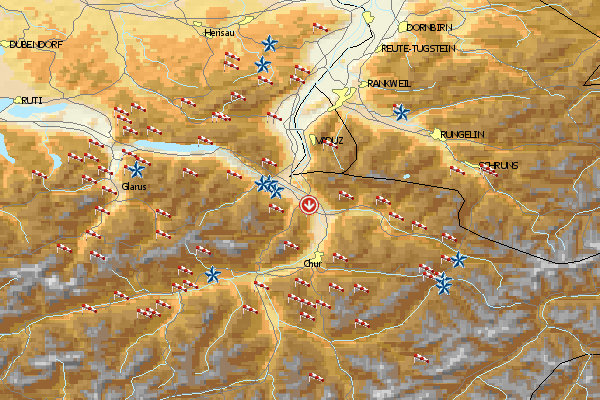 | [taggi] | | für Flüge nördlich von Chur: Heliport Untervaz |