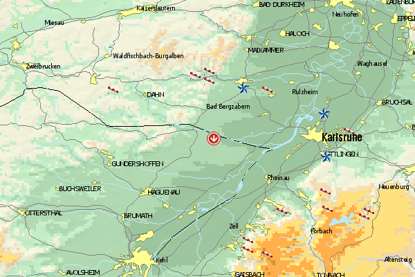 Fliegen über den Termalquellen der Bäderstadt. Der Westrand des Schwarzwaldes ist thermisch recht aktiv, ansonsten kann hier auch gut gesoart werden.