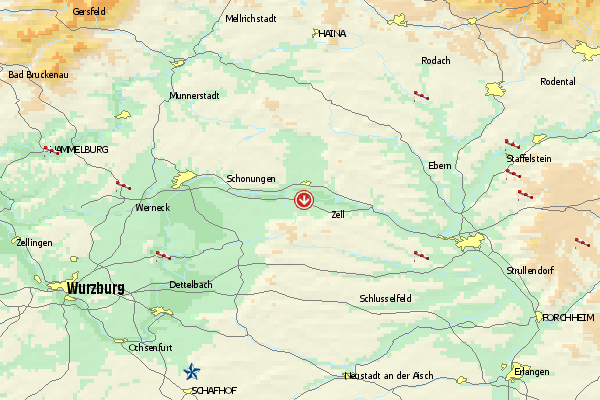 Dettelbach (rund 15 km von Würzburg entfernt) bietet eine Schleppgelände. Der Höhenunterschied beträgt 450 m bzw. 330 m. Gastpiloten starten nur in Absprache mit Clubmitgliedern.