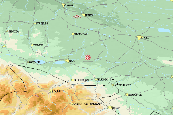 Bei Breslau liegt dieses Fluggebiet mitten im Forstgebiet (daher auch etwas schwierige Anfahrt). Die Startfläche selbst ist jedoch "kahl". Der Höhenunterschied zwischen Start und Landung beträgt 400 m.