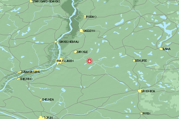 Das Fluggebiet im Norden Polens eignet sich für Piloten auf Anfänger- und mittlerem Niveau. Der Höhenunterschied zwischen Start und Landung beträgt 30m .