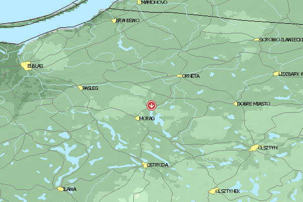 Das Fluggebiet im Norden Polens eignet sich für Piloten auf Anfänger- und mittlerem Niveau. Der Höhenunterschied zwischen Start und Landung beträgt 30m .