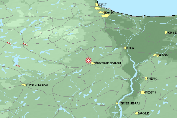 Das Fluggebiet im Norden Polens eignet sich für Piloten auf Anfänger- und mittlerem Niveau. Der Höhenunterschied zwischen Start und Landung beträgt 30m .