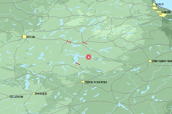 Das Fluggebiet im Norden Polens eignet sich für Piloten auf Anfänger- und mittlerem Niveau. Der Höhenunterschied zwischen Start und Landung beträgt 30m .