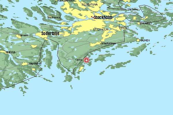 Der Startplatz liegt an einem Küstenhang und befindet sich in der Peripherie von Stockholm.