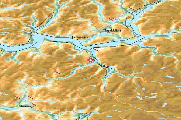 Bei diesem Fluggebiet in der Nähe von Bergen stehen zwei Start- und zwei Landeplätze zur Verfügung. Der Höhenunterschied beträgt dabei 1070 m bzw. 600 m.