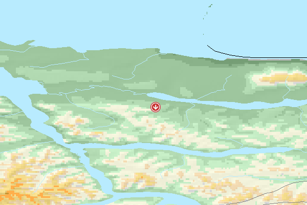 | [Oliver Voss] | | Midnight Sun Paragliding | | Blick von der Landezone auf den Bear Mt. |