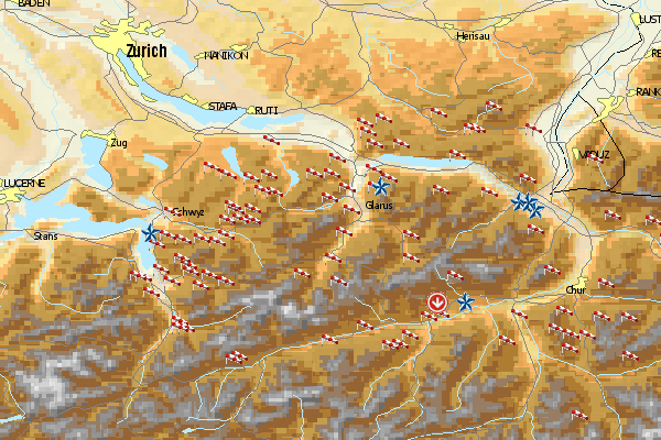 Im Winter nach Flims oder nach Larnags. Landeplatz in Falera ist in westlicher Richtung von der Talstation.