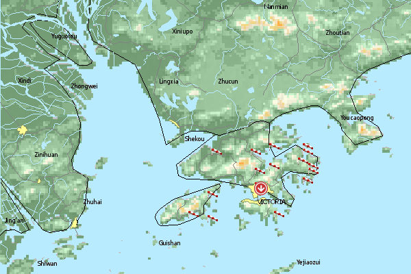 Noch nicht ganz erforschte Flugseite etwas weiter draußen in Hong Kong. Es geht Richtung SW in die Lüfte.