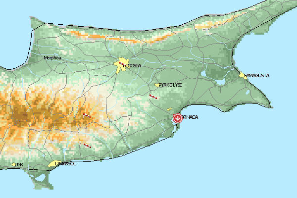 Die Flugseite befindet sich von Larnaca ca. 5 km in Richtung NE in Oroklini.