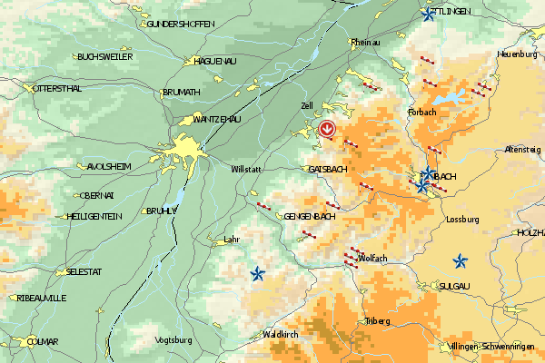 Fliegen über den Termalquellen der Bäderstadt. Der Westrand des Schwarzwaldes ist thermisch recht aktiv, ansonsten kann hier auch gut gesoart werden.