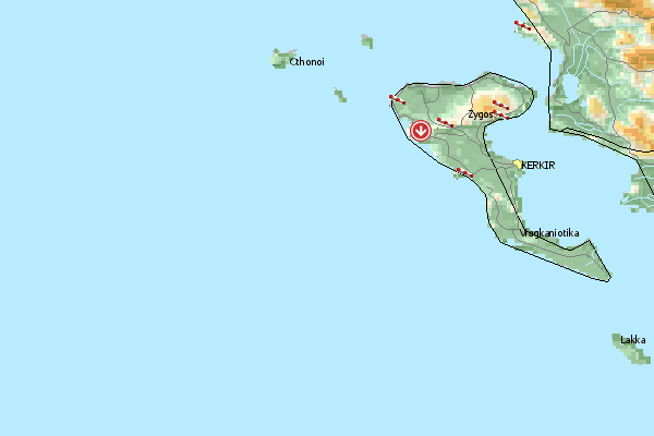 Soaring-Gebiet an der Küste. Von Agios Stefanos geht es Nördlich und dann Östlich die Küste entlang. Bis Sidari sollte es ohne Probleme gehen.