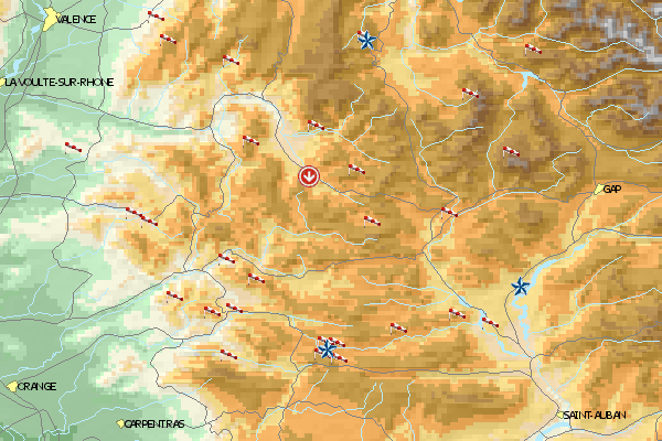 Coord 44°50'45" und 05°16'35" sinf falsch. Vesc liegt nicht da. Richtege coordinates kenne ich nicht.