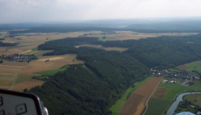 23 Juli 2005. Blick nach Westen .Die Waldschneise etwas links von der Bildmitte ist der Startplatz (Nordweststart).