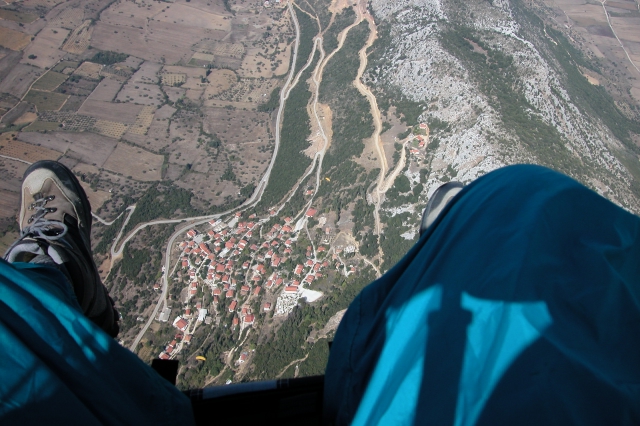 Above Santomeri - Launch paddock above right shoe, bomb-out above left shoe.